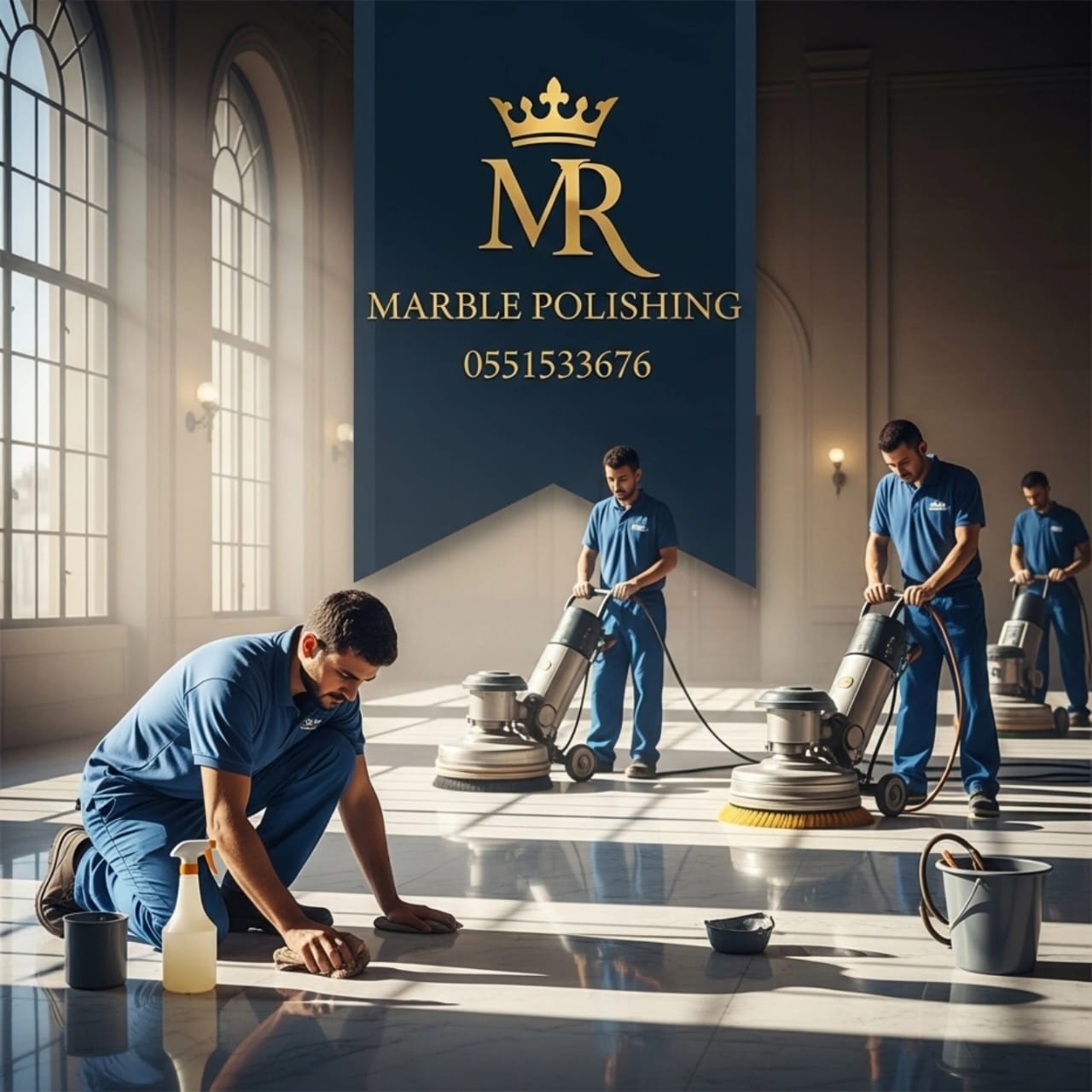 نتميز أيضًا بتلميع الرخام بمادة الكريستال.